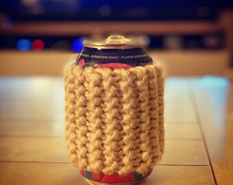 Keep yer beverage cold and yer hands dry with this knitted can koozie, just like grandma used to make!